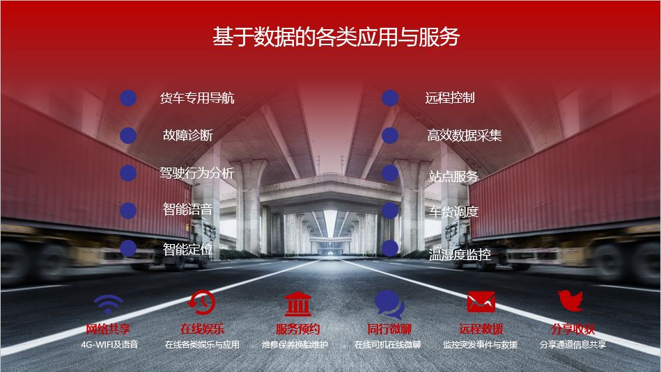 The commercial vehicle field has embarked on the transformational tempo of the digital age. As an important part of the business operation, the combination of various types of freight logistics truck data and high-speed cellular networks provides real-time and accurate information for enterprise management and operation. Various aspects such as scheduling provide more optimized real-time decisions.